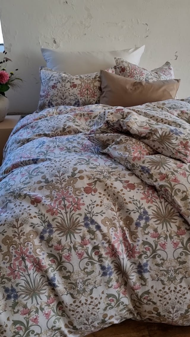 Beatrice sengesett i sateng har et delikat blomstermønster som gir soverommet et friskt og romantisk preg. Den glatte, silkemyke satengen føles behagelig mot huden og gir en lun følelse gjennom natten. Et tidløst design som passer både til hverdags og når du vil skape en rolig, innbydende atmosfære.