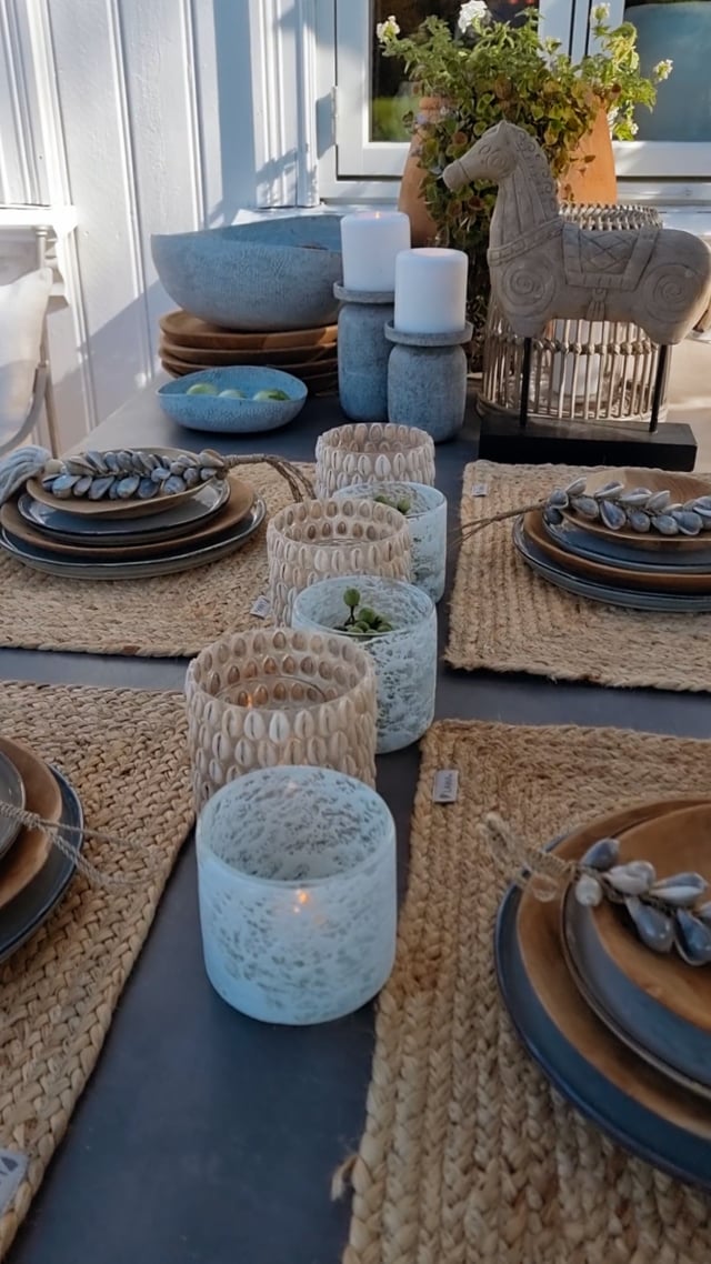 Telysholdere i form av skjell laget av marmorert glass. Passer perfekt til telys og gir et elegant preg til borddekorasjonen.